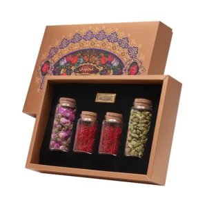 پک هدیه فاخر «تذهیب» - سهگانه معطر ایرانی (زعفران، هل، گلمحمدی)