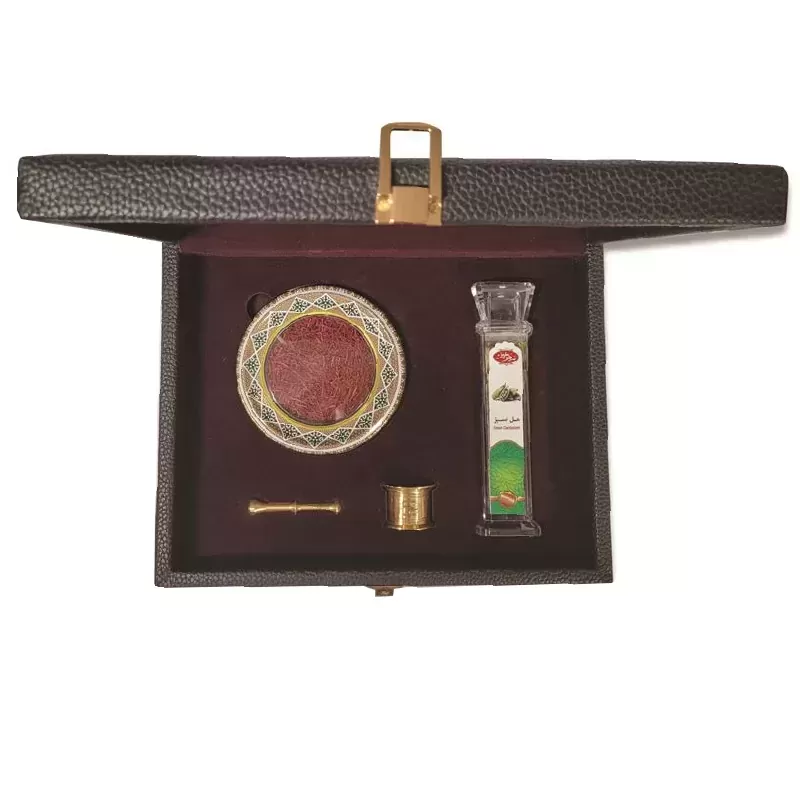 • کیف چرمی نفیس: یک بستهبندی ماندگار که حتی پس از تمام شدن زعفران هم قابل استفاده است.