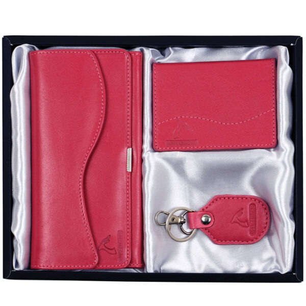 ست هدیه چرم طبیعی زنانه (۳ تکه) - مدل رویال (کیف پول، آینه و جاکلیدی)