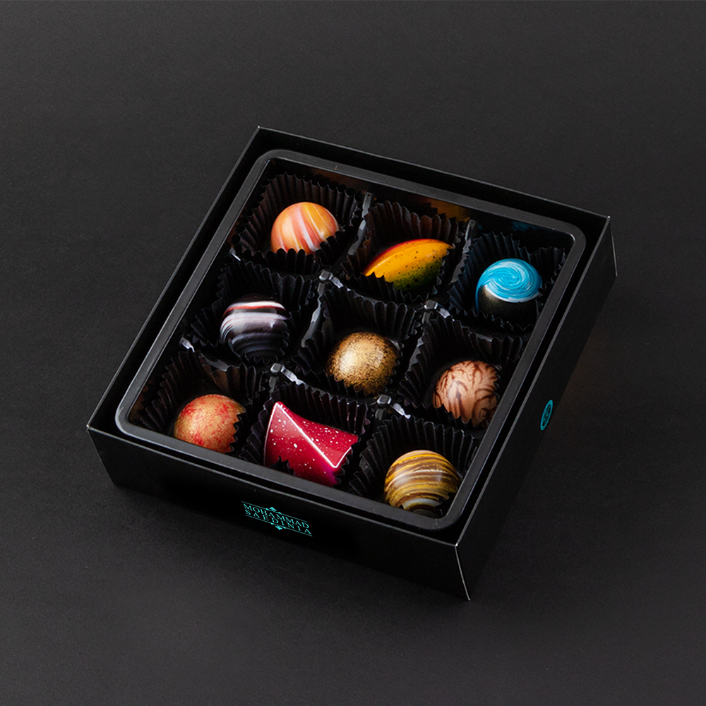 این جعبه ۹ عددی، ضیافتی از طعمهای متنوع است؛ تلفیقی هنرمندانه از شکلات تلخ غنی، شکلات شیری لطیف و شکلات سفید خامهای. این تنوع باعث میشود تمام اعضای خانواده با هر سلیقهای از آن لذت ببرند. به دلیل حساسیت و ظرافت این محصول، نگهداری آن در جای خنک الزامی است.